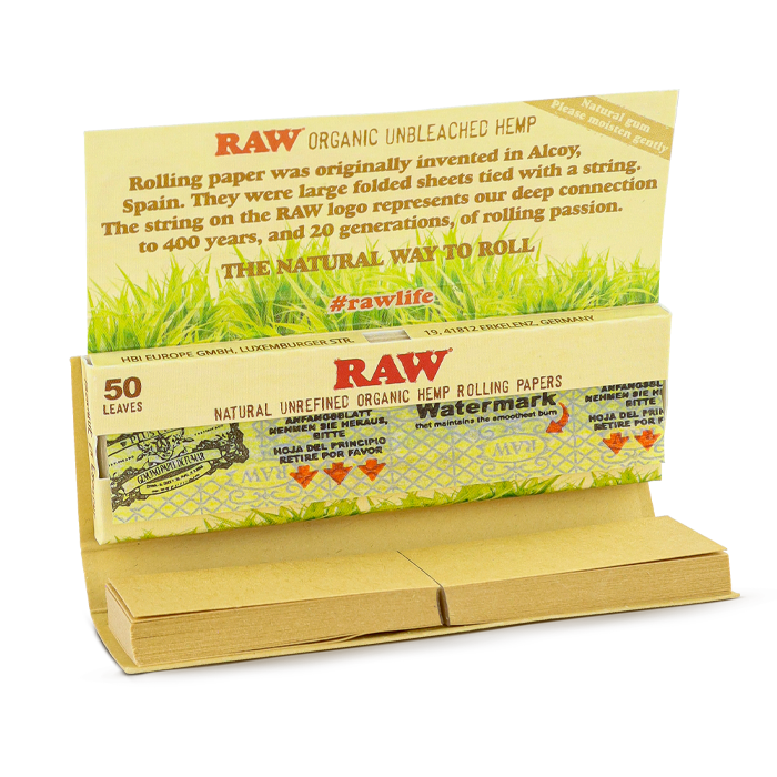 Los papeles RAW Organic están hechos de cáñamo puro sin cloro cultivado orgánicamente y se procesa de una manera ecológica. El resultado es un papel bronceado claro muy fino que quema más lento y extra limpio.